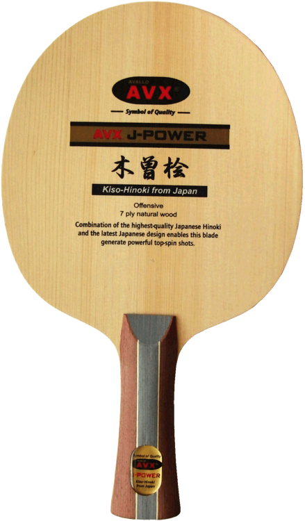 Sedmivrstvé dřevo značky Avalox s dýhou Hinoki pro maximální cit při topspinu a s velkými možnostmi variací útočných úderů.