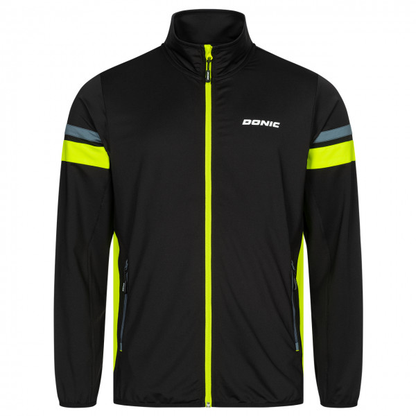 Teplý materiál s elastickými vlastnosťami dáva veľa slobody v pohyboch, takže nevadí pri rozcvičke. Bunda s kontrastnými prvkami a dvoma vreckami na zips.