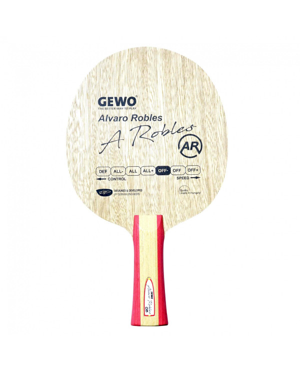5 vrstvové drevo GEWO Alvaro Robles OFF- je ideálne pre každú hernú situáciu. Podľa výberu poťahov môže byť toto drevo použité či už na silný útok s dobrou kontrolou a skvelými vlastnosťami pri pasívnej hre. Ponúka skvelú odozvu loptičky a kontrola jednotlivých úderov je očarujúca. Vďaka jemnému citu typickému pre kvalitné drevá od GEWO, GEWO Alvaro Robles OFF- je skvelé drevo pre každého all-roundového útočného hráča. Kreativite sa medze nekladú a môžete blokovať, smečovať, trieskať, pinkať alebo namotávať podľa vôle. Vyrobené v Nemecku.