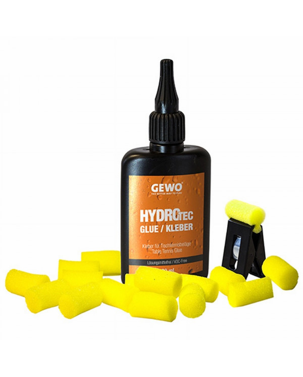 Lepidlo GEWO HydroTec je vyrábané z 100% tekutého kaučuku. Vodou riediteľné (HydroTec) a organicky nezávadné (VOC-free). Jeho použitie je jednoduché aj pri špongiách s veľkými pórmi. Čas schnutia je tiež veľmi krátky. Vďaka svojim skvelým vlastnostiam je možné neskôr poťahy odlepiť od dreva bez poškodenia či poťahov, tak rakety. Taktiež sa jednoducho odstraňujú zvyšky lepidla z poťahov a rakiet.