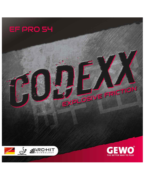 Nová séria GEWO CODEXX prichádza ako dokonalá kombinácia európskych a ázijských poťahov. Má dynamickú tvrdú špongiu a jemne lepivú povrchovú gumu. Tieto poťahy sú vyrobené pre nebezpečný útočný stolný tenis, ponúkajú preto riadnu dávku sily a rotácie.