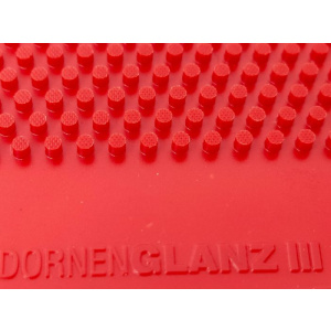 Tráva – novinka 2021. Kaučuková zmes Dornenglanz III obsahuje veľké množstvo umelých polymérov, vďaka ktorým je povrch mäkší a pružnejší ako všetky ostatné trávy s dlhými zúbkami. kt Dornenglanz III je navyše mimoriadne šikovný s veľmi dobrou kontrolou. Dornenglanz III je vhodný najmä na hranie pri stole. Dornenglanz III vyžaduje malé použitie zápästia. Je primárne určený pre aktívny a agresívny štýl hry a je vhodný najmä pre hráčov, ktorí sú veľmi blízko pri stole a berú loptu veľmi skoro. Dornenglanz III umožňuje veľmi presné umiestnenie lopty a neustále sa meniace varianty strihu.