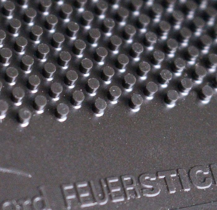 Tráva. Feuerstich je útočný poťah s dlhými zúbkami, ktorý sa radí medzi tie rýchlejšie v tejto kategórií. Je pomalší ako Tuttle Autumn 3D, ale rýchlejší ako Giant Dragon Attack Long, či CTT National Pogo. Napriek tomu má dobrú kontrolu a bez problémov zahráte aj pasívne bloky. Je variabilnejší ako Attack Long, vďaka dlhším zúbkom ďalej od seba. Pre všetkých hráčov obľubujúcich vyššiu rýchlosť, pre ofenzívne rušivé útoky, ale aj kontrolu v pasívnych blokoch. Sila poťahu sa ukáže zo strednej vzdialenosti
