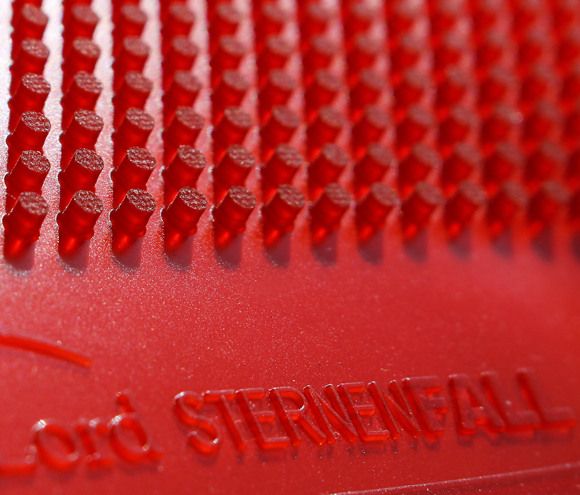 Tráva.V poradí šiesta tráva od fi. SPINLORD, ale jasne odlíšená od ostatných a to hlavne kvôli zdrsnenej úprave povrchu zúbkov. Ich rozmiestnenie (veľmi ďaleko od seba) a zmes hracej gumy sú úplne nové. Vývoj a testovanie tejto trávy trvalo kvôli použitiu 10 rôznych zmesí niekoľko mesiacov. Zvolená zmes je stredne tvrdá, pružná a odolná, s pomerne nízkou rýchlosťou, čo je podmienené väčšou vzdialenosťou medzi zubami. Svojou rýchlosťou sa približuje poťahu Dornenglanz. Sternenfall je univerzálne použiteľný v hre a ešte všestrannejší ako Blitzschlag, pretože to je tiež ideálny pre útočné zrážanie lopty pri stole, pri blokoch a rovnako pri obranných backspinoch. Trajektória lopty nie je tak plochá, ako pri Dornenglanz, ale výrazne plytšia ako pri poťahu Feuerstich. Rušivý efekt je pri blokoch rovnako nižší, ako napr. pri Dornenglanz, ale vyšší ako pri väčsšine tráv a hlavne technika úderov je veľmi vysoká. Preto je tento poťah veľmi jednoduchý na ovládanie, čím klesá vytváranie chýb pri hre. Odporúčame pre všetkých hráčov, ktorí blokujú a to nielen pri stole a trochu všestanne agresívne (pre hráčov blokujúcich pri stole, zostávajú Zeitgeist a Dornenglanz prvá voľba). Vo verzii so stredne mäkkou špongiou je tvrdosť cca. 40°-43°, čo posilňuje útočné vlastnosti a je vhodná pre backspin obranu, ale samozrejme na úkor kontroly. Vhodný na prechod do ofenzívy, pričom disponuje dostatočnou kontrolou!