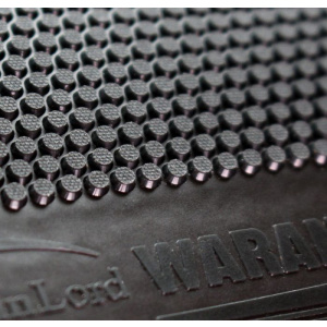Sendvič.Väčšina moderných senvičov je kombinovaných s mäkkou vrchnou gumou a mäkkou špongiou. Novo vyvinutý Waran je iný, pretože vrchná guma je tvrdá a zuby sú veľmi krátke, trochu vytvarované do kuželovitého tvaru. Špongia je mäkká, s veľmi silným zabudovaným efektom lepenia, ktorého zvuk je počuteľný a viditeľný. Táto kombinácia robí poťah Waran najrýchlejším z našej ponuky Spinlord sendvičov. Napriek tomu disponuje poťah jednoduchým ovládaním a nie je citlivý na prichádzajúcu rotáciu súpera, dokonca Vaše údery dokážete veľmi presne umiestňovať. Rovnaký povrch, ale s vytváraním menšej rotácie má aj poťah Degu, ale nie je tak nebezpečný ako Waran, pretože lopty sú odrazené veľmi nebezpečne, plytšie a kratšie, ako súper očakáva. Waran je ideálnym poťahom pre: – kontrované protiútoky a bloky – agresívnu útočnú hru – pre všetkých, ktorý preferujú hru so endvičom na backhande. Pri vysokých loptách, možete rovnako z forehandovej strany úplne ľahko ukončiť úder, ako nikdy predtým. Klasifikácia : krátke zuby Povrch poťahu: silne vlnité.